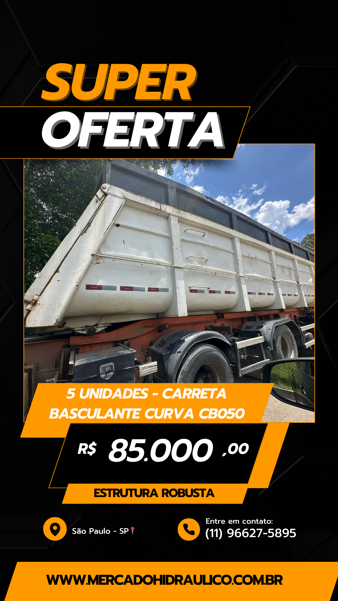 | Modelo: Semirreboque Basculante de caçamba curva (ideal para materiais a granel). |