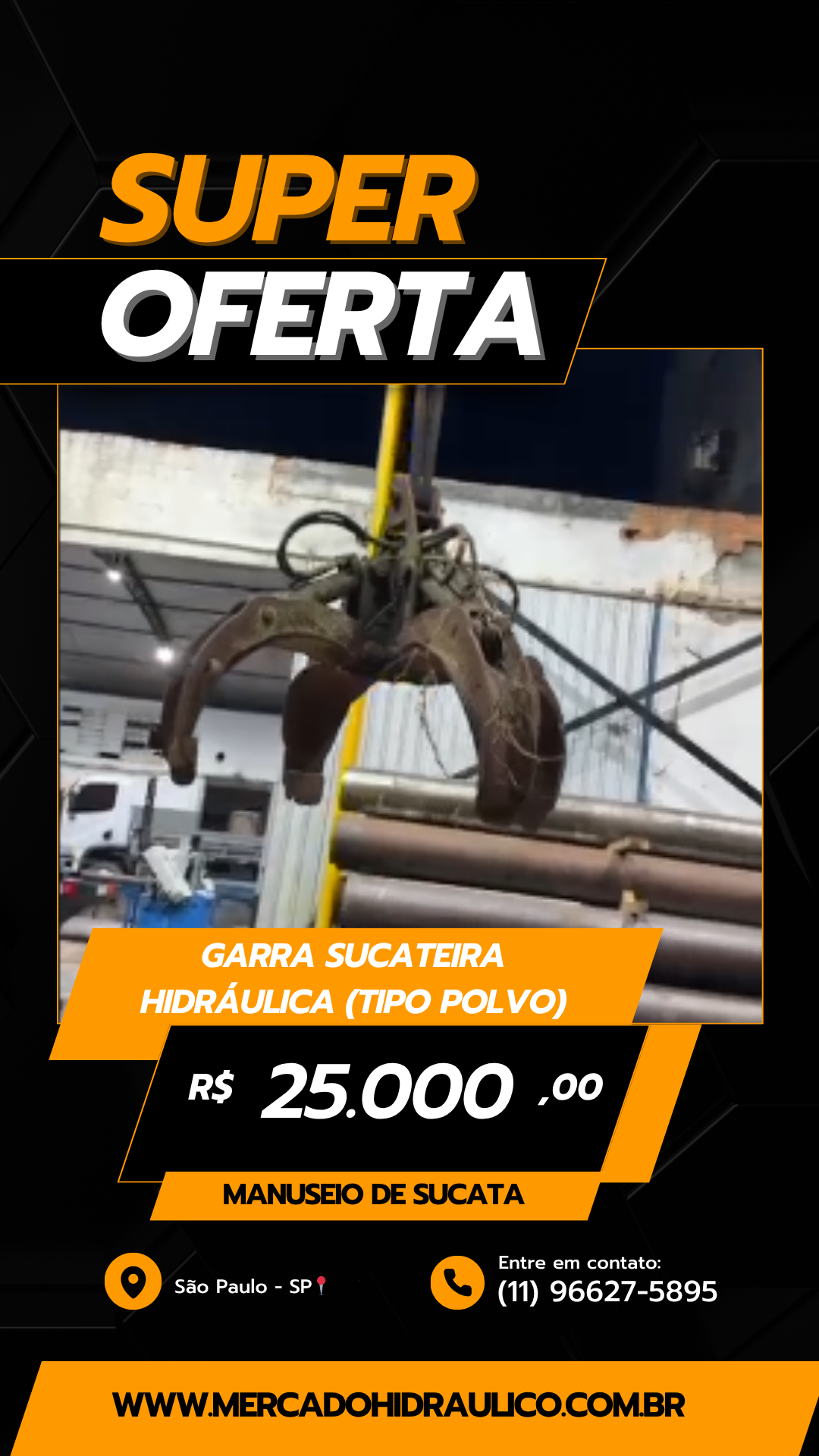 | Desenvolvida especialmente para a captação, elevação e movimentação de sucatas, resíduos sólidos e materiais irregulares a granel. |