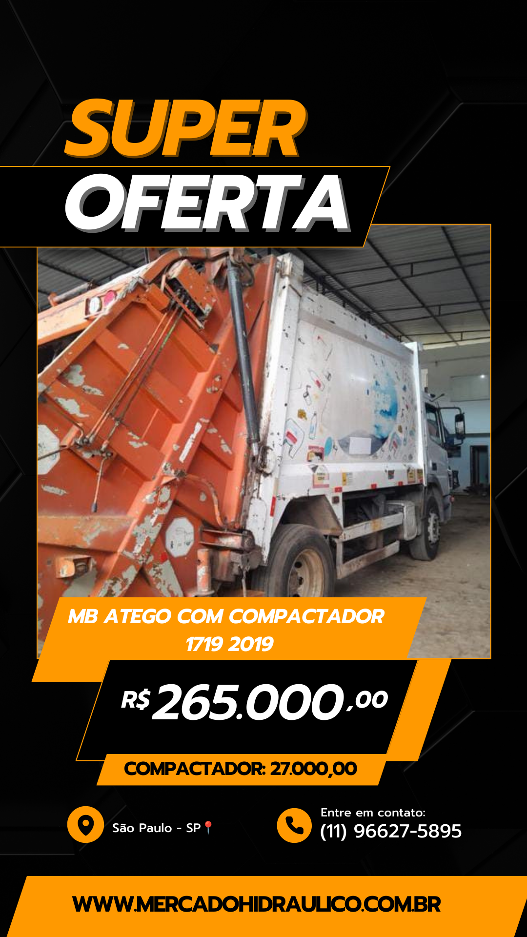 Valor do compactador de lixo – 27 mil