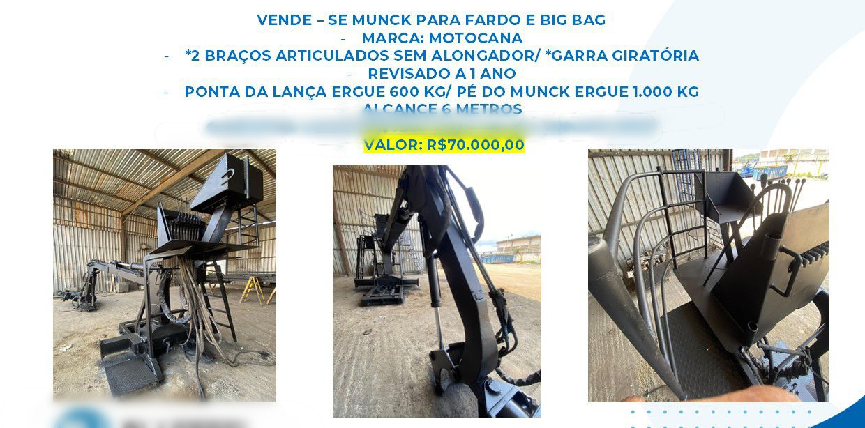 Munck/Guindaste da marca Motocana, ideal para movimentação e elevação de fardos e big bags.